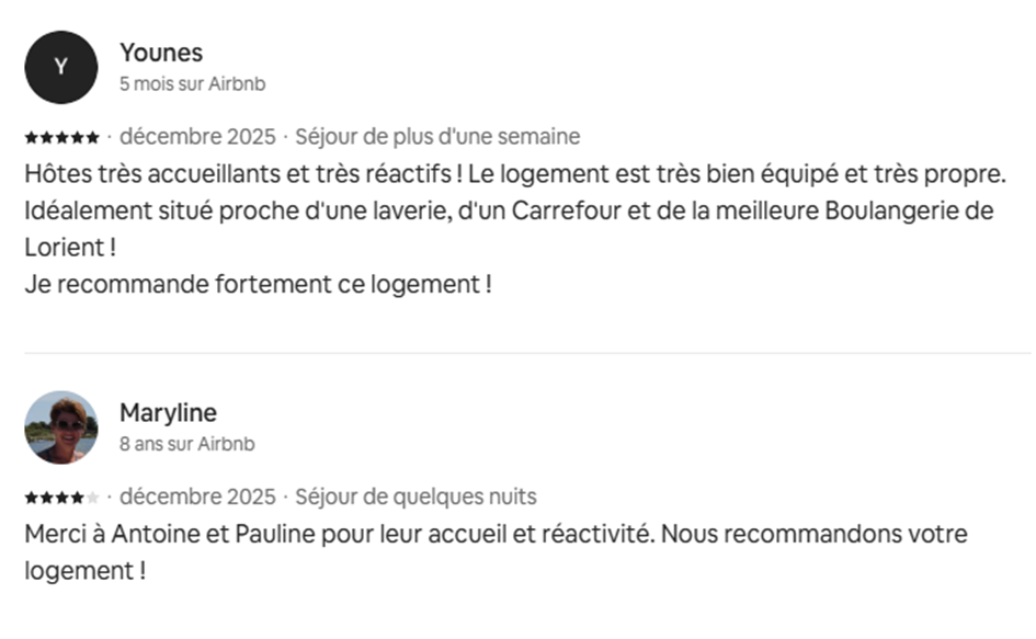 Je propose des logements indépendants, parfaitement adaptés aux professionnels en déplacement à Lorient.